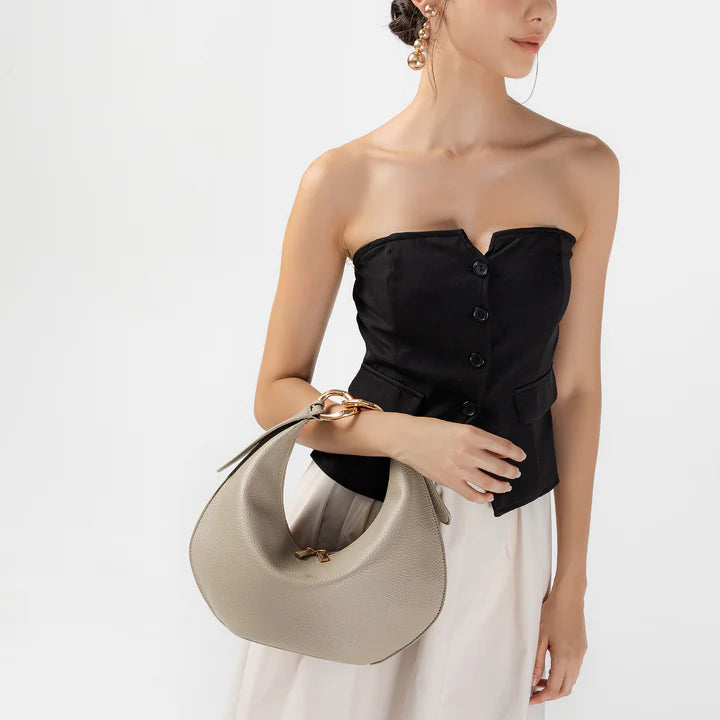 For the dazzling highlight: Kuki goes from shoulder bag to hand-held, simply by removing the handle. A flawless transition for going from AM to PM activities.