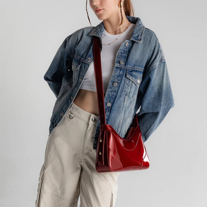 The interchangeable strap adds versatility, allowing it to be worn as either a shoulder bag or as a crossbody bag.