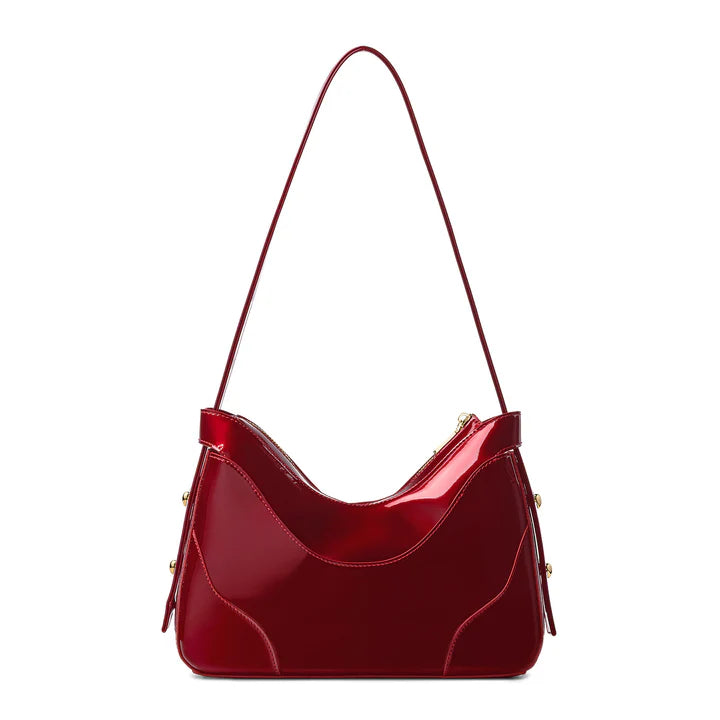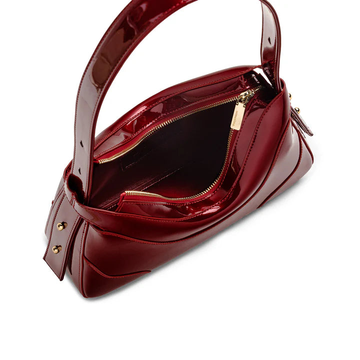 Offered in suede and patent leather, this opulent piece lends a distinctive flair to whatever it’s paired with.